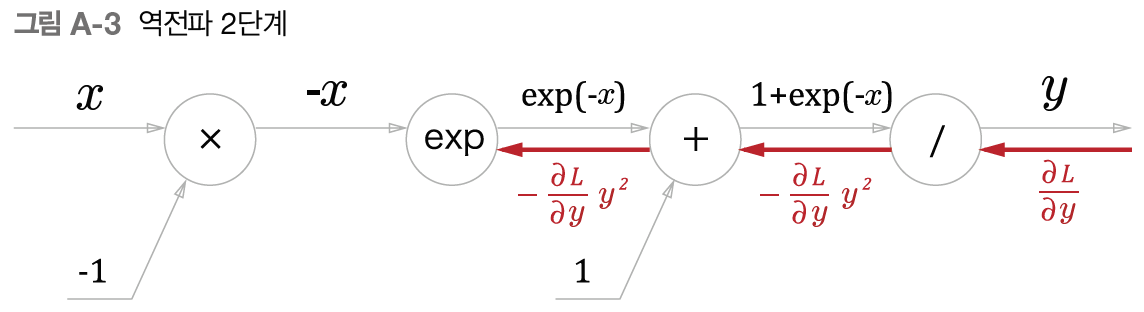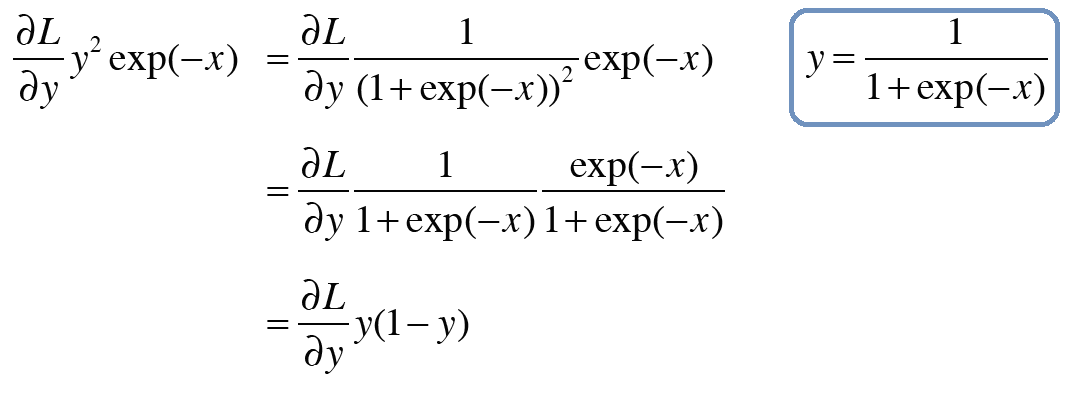 나누기 연산 노드에서 local gradient는 마이너스 y제곱 임이 위의 계산결과를 통해 도출되었으므로