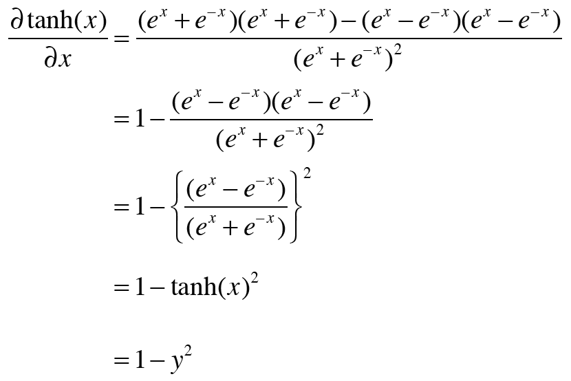 tanh 함수를 미분하기 위해 두 개의 식을 사용한다