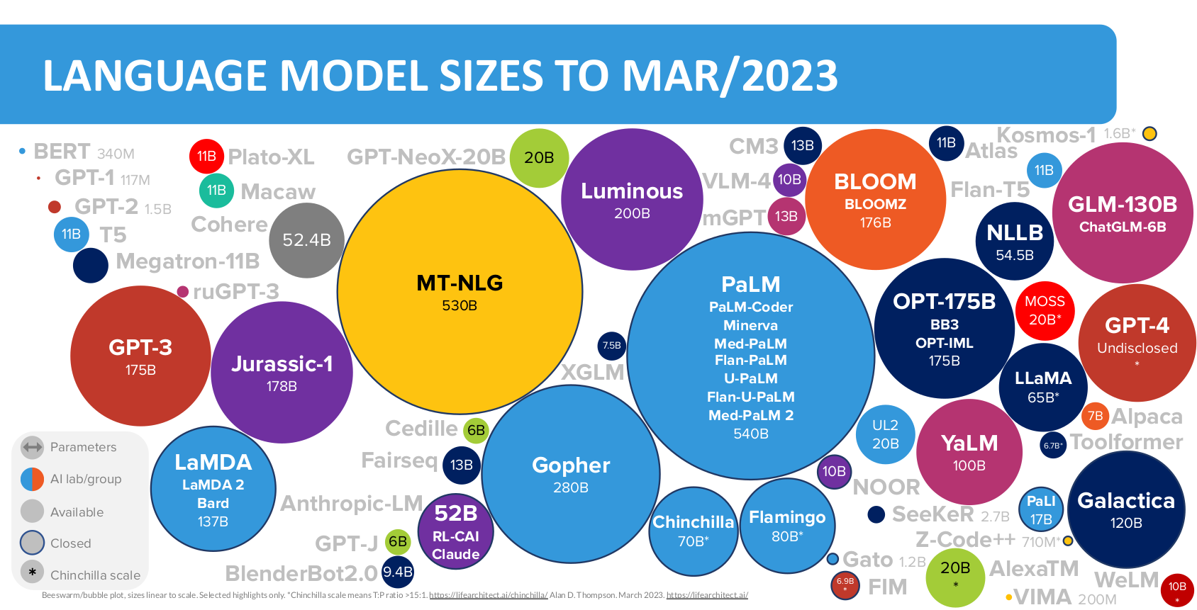 2022년 4월에 발표된 Google의 PaLM은 5천 400억 개 파라미터를 가진 현재 시점 기준 가장 큰 모델입니다.
