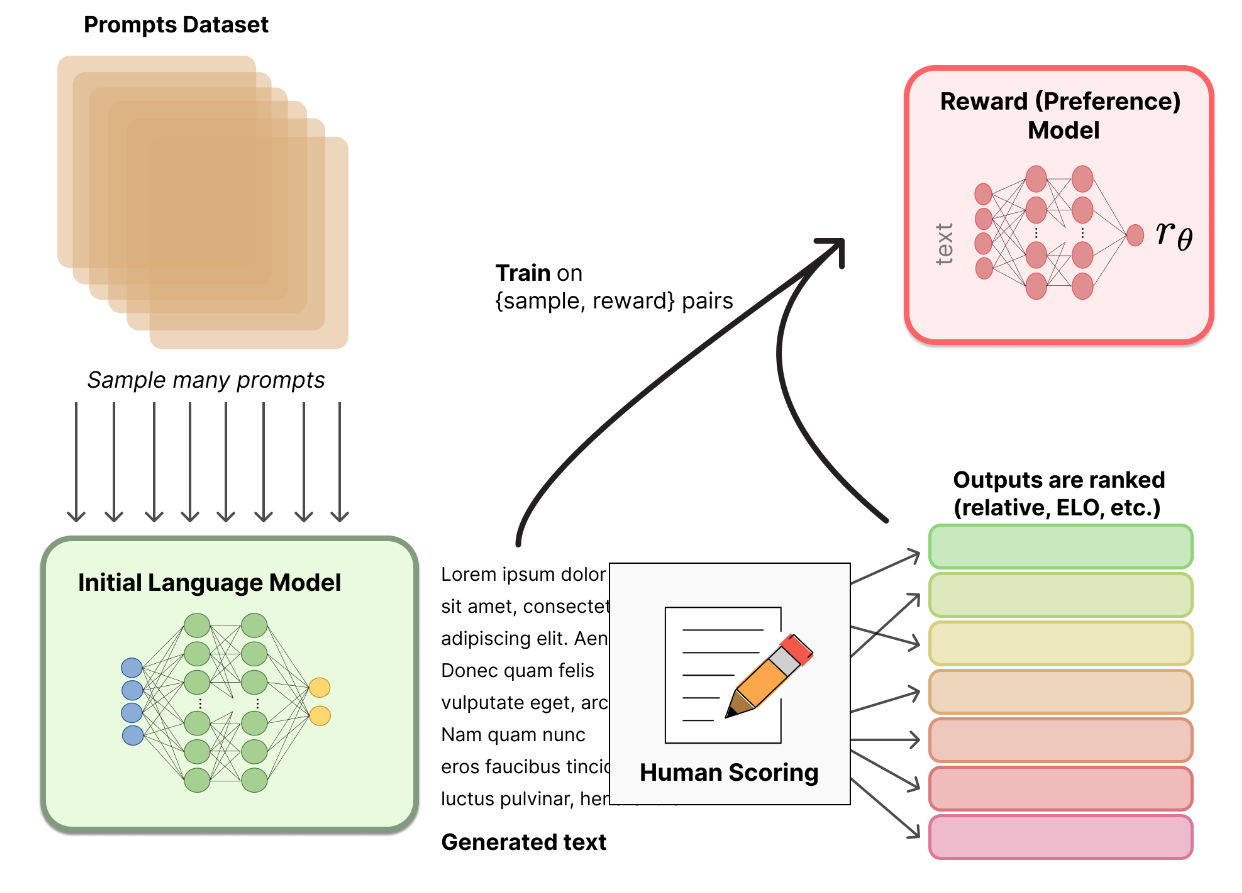 OpenAI의 InstructGPT의 경우 인간이 직접 LM이 생성한 답변에 rank를 매겨 이 순위를 RM이 학습하도록 했습니다.