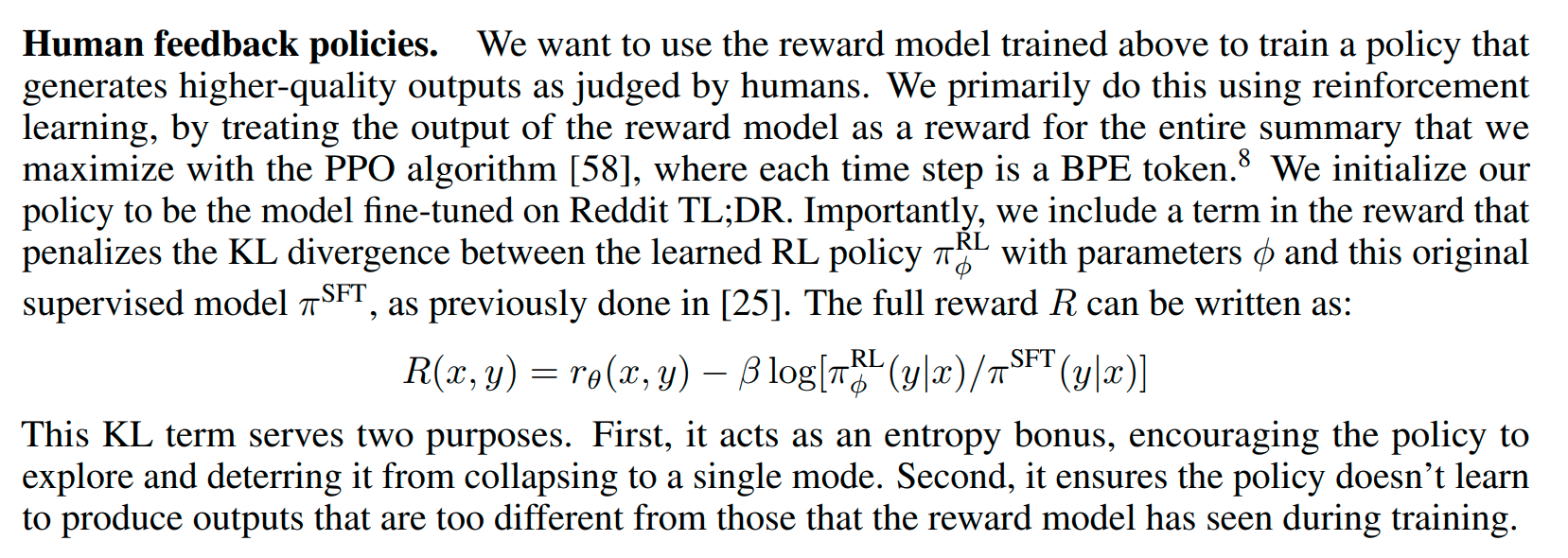 그 뒤를 이어 2020년에 발표된 Learning to summarize from human feedback논문에서는