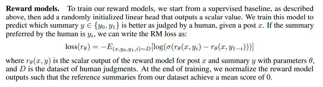 논문 Learning to summarize from human feedback의 6p에 있는 Reward Models. 부분을 발췌한 그림입니다.